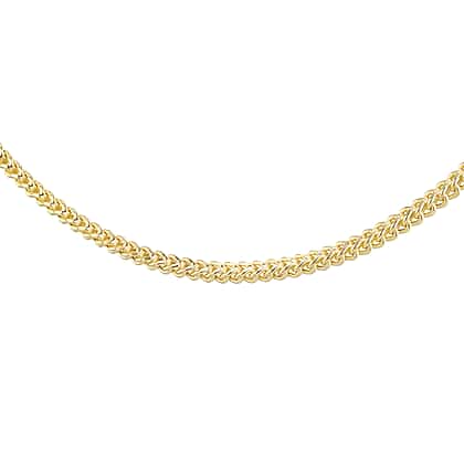 This gold Franco link chain is a timeless and elegant piece of jewellery that will put you in the spotlight! Expertly crafted from high-quality 9K yellow gold, this chain exudes luxury and durability. The Franco links are arranged in a Spiga style, giving the chain a sleek and sophisticated appearance. The Spiga style links are links arranged in a spiral pattern, resembling the shape of a wheat spike or "Spiga" in Italian. They are carefully crafted to create a smooth and seamless flow, making the chain comfortable to wear and easy to style. The chain is secured with a lobster clasp, ensuring a secure fit and easy to put on and take off. In addition, the chain's polished finish imbues it with a radiant and lustrous sheen, making it a beautiful and alluring accessory. This chain is perfect for those looking for a timeless and elegant accessory to add a touch of luxury to any outfit.