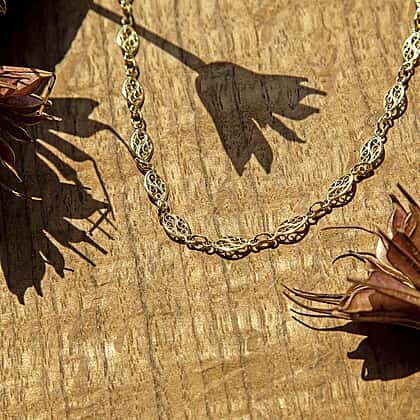 9K Yellow Gold Filigree Oval Link Chain 24 Inch
