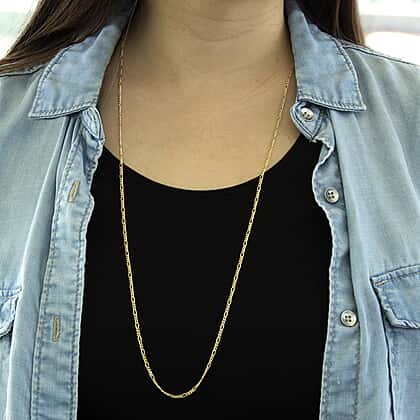 The Figaro chain's dynamic and eye-catching build featuring a burst of shorter links alternating with flattened long links makes it one of the most promising fashion accessories. The contrast between the different link sizes creates a sense of disarray and harmony. The 30-inch chain draws attention to your decolletage while pampering you with single and multi-strand layering options.