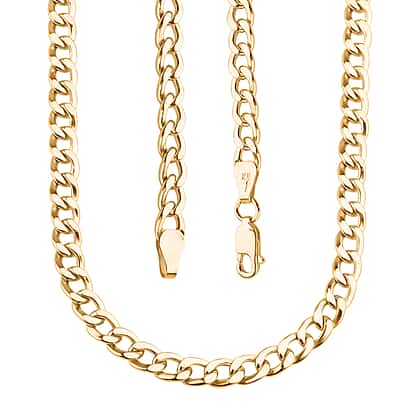 9K Yellow Gold 4.6MM Flat Curb Chain with Lobster Clasp 24 Inch