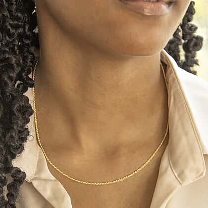 A rope chain is a metal chain necklace with multiple little links that form a rope design and feel smooth against your skin. This rope chain is made of gleaming 9K yellow gold, giving it a delicate and expensive appearance. For easy closing, a secure spring-ring clasp fastener is used. Because only 3.8 grams of gold is used, the chain is light and comfortable to wear for longer periods of time.