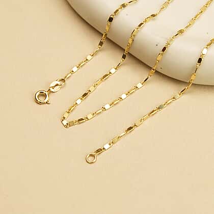 9K Yellow Gold Sparkle Flat Link Necklace 16 Inch