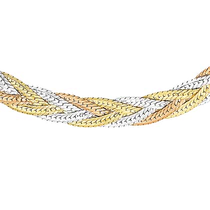 Italian Made- Triple Tone Braided Necklace Size 18 in 9K Yellow Gold, Rose Gold and White Gold