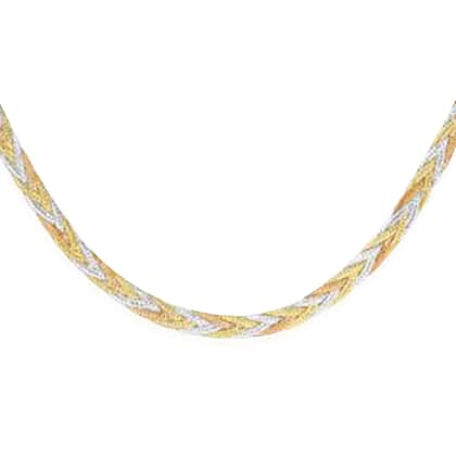 - DESCRIPTION: Leave people awestruck by flaunting this triple-tone necklace that comes in 18-inch and shimmer of 9K white, yellow and rose gold