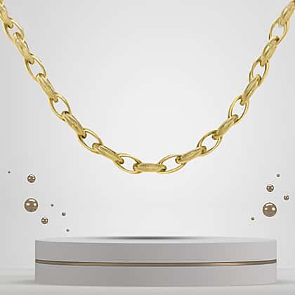 TJC presents a fabulous-looking 9K Yellow Gold Broad Oval Chain that marries luxury with strength. Its broad links create a statement of power and prestige, while the oval shape adds a touch of softness to the design. This chain is not just a piece of jewellery, it's a bold accessory meant for those who wish to convey confidence and class. The lustrous finish of the yellow gold provides a warm glow that enhances the wearer's presence.