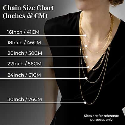 - The Opera-length (Size 30) necklace falls below the bust line