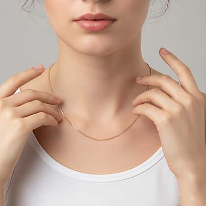 Chopin chain makes for truly classic pieces that can give anything in your wardrobe an androgynous edge. Consider this stretching coplin chain crafted in 24K yellow gold. It has a slim profile and makes for a diminutive-yet-chunky chain. It has a smooth, flexible, and fluid allure. The chain also offers a gentle stretch that makes it comfortable to wear all-day long. It exudes quiet luxury and makes for a worthy collectible for your jewellery collection. This chic chain comes with a lobster clasp closure that offers secure wear.