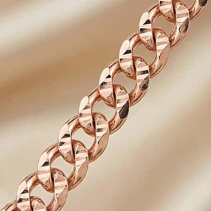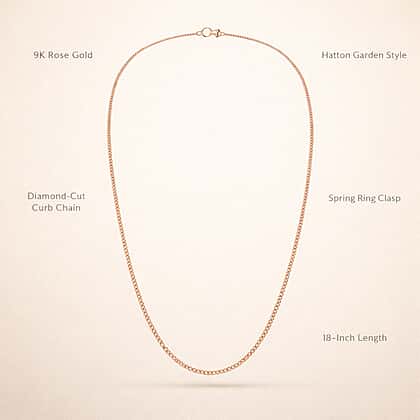 Hatton Garden Closeout Deal - 9K Rose Gold Diamond Cut Curb Chain (Size - 18) with Spring Ring Clasp