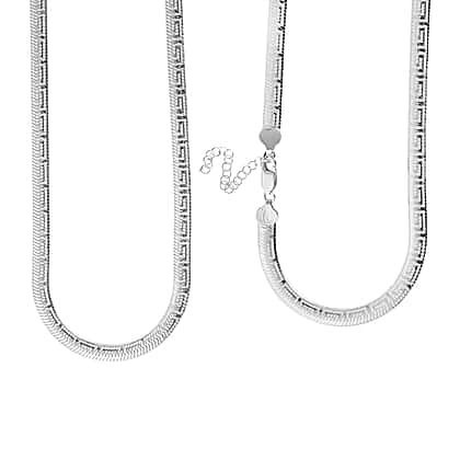 925 Sterling Silver Greek Key Chain with Rhodium Finish