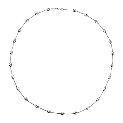 Italian Made-Sterling Silver Station Oval Moon Necklace (Size - 24)