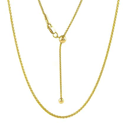 Adjustable Wheat Chain Size 24 in Yellow Gold Plated Sterling Silver