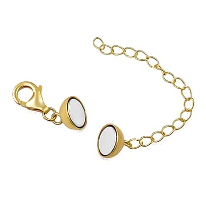 This magnetic lock with a 2-inch extender and lobster clasp offers both style and practicality. Perfect for anyone who finds traditional clasps tricky, this magnetic lock ensures your jewellery stays securely fastened while providing ease of use. The 2-inch extender allows you to adjust the length of your necklaces or bracelets, making them more versatile for any outfit. Crafted in yellow gold-plated sterling silver, it adds a touch of luxury to your jewellery collection without compromising on functionality. Whether for daily wear or special occasions, this extender and magnetic clasp combination is a must-have for enhancing your accessories.