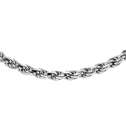 Sterling Silver Rhodium Plated Solid Diamond Cut Rope Chain 18 Inch