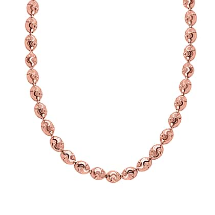This Rose Gold Overlay Sterling Silver Typhoon Chicco Necklace draws its charm from delicate, intricately-carved links. The 20-inch chain is a minimalist delight, with a strong silver construction that shines in the luxe finish of rose gold. It is a versatile accessory with a comfortable length (20 inches) that can be paired with other necklaces or with a pendant of your choice.