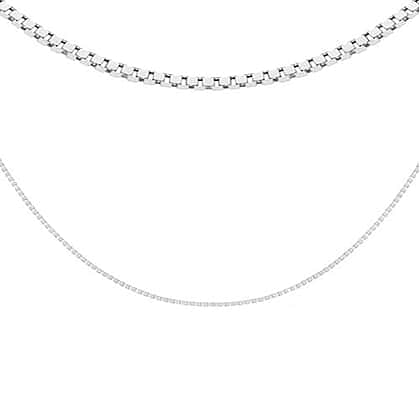 Italian Made Box Chain in Platinum Plated Silver 34 Inch