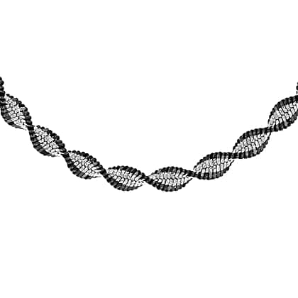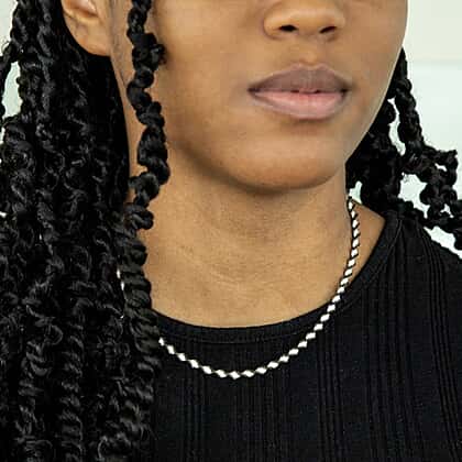 This fancy chain has an arresting look made by a clever use of oxidised silver and a twisted design. The 4.1mm thick chain sits gently around your neck grabbing all the attention with its princes length of 16 inches. It features an enamelled look that accents its striking beauty. Silver makes the chain sturdy and ready for regular use.