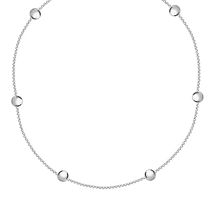 Make a splash by unleashing a high neckline drama with this 18-inch silver chain. Wear the short silver chain with a high-necked dress or top to draw attention to your neckline. This pairing creates a balance between the high neckline and the delicate chain. The chain features a series of silver ball stations that look like gleaming Tahitan pearls famed for their monochrome look.