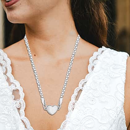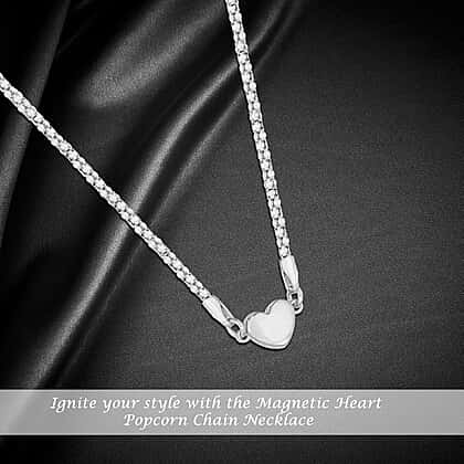 Sterling Silver Magnetic Heart Popcorn Chain Necklace 17 Inch