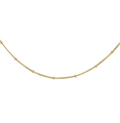The classy-looking satellite chain's subtle shimmer creates its niche in the fast-paced city lifestyle, making it an essential accessory in your jewellery box. Whether paired with casual outfits or used to dress up formal attire, the sterling silver chain with yellow gold plating adds a touch of magical allure to your dressing sense. The silver chain has a spring ring clasp with an extender.