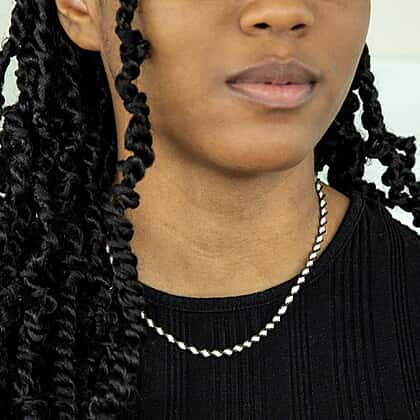 This chain has an eye-catching design completed with twisted links in oxidised silver. The satin twist renders the well-knit design a playful edge. The silver chain looks elegant when paired with a day dress and creates a charming look when adorning a party outfit. The chain can be worn easy with a lobster clasp that offers a gentle and secure closure.
