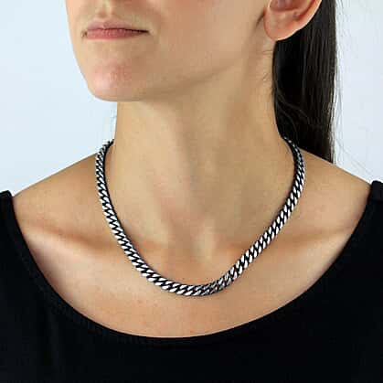 This stunning oxidised flat curb chain is a classic chain that adds a touch of sophistication to any outfit. The oxidised finish creates a unique contrast between the natural silver and rusty black, giving it a modern and stylish edge. This chain can be worn alone or paired with other accessories to create a stunning look. With its timeless look, this chain will become a favourite piece in any wardrobe.
