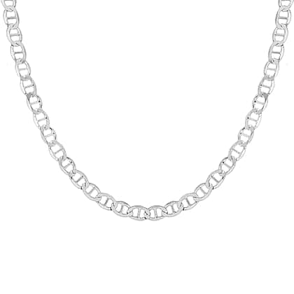 Made for the person who settles for nothing but the best, this Sterling Silver Flat Rambo Chain makes a bold statement. With thick oval links that feature a bar at the centre, the chain boasts a sturdy design. The versatile piece can be dressed up or down and worn for any occasion.