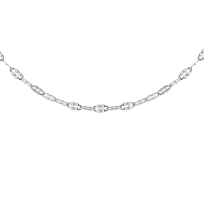 This classy ornament showcases a breathtaking Italian design that weaves a fabulous look with its unique arrangement of delicate links. The links flattened in the centre create a dazzling shimmer with the ribbed textures. The Forzatina chain with its 18-inch length leaves you looking gorgeous in both night dresses and day outfits.