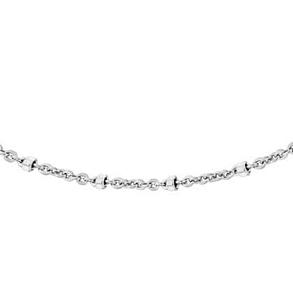 Just as a river flows ceaselessly around a mountain bend, this silver chain sits around your neck in a graceful embrace. Its beauty is uncorrupted by time and unyielding to the passage of seasons. The chain features interlocking links separated by cube stations across its length. The 18-inch length of the chain creates a shimmering statement by draping your skin in its silky lustre.