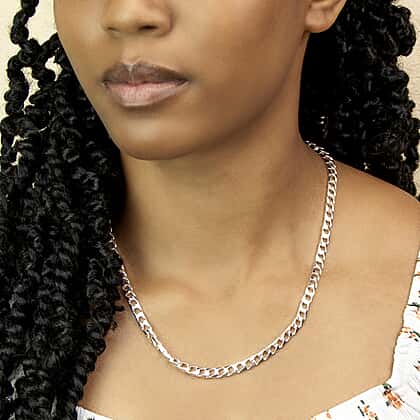 This bold and sturdy chain features a flat square link curb design with circular links that interlock together. The sterling silver chain is carefully crafted, giving the necklace a robust structure and a polished finish. It has a lobster clasp that is easy to use and secure. It's 18 inches long, which is ideal for highlighting your collarbone.