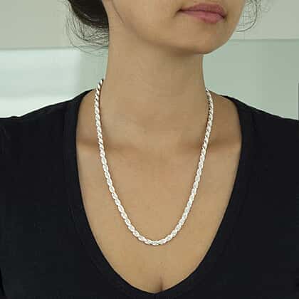 Sterling Silver Solid Diamond Cut Rope Chain 20 Inch