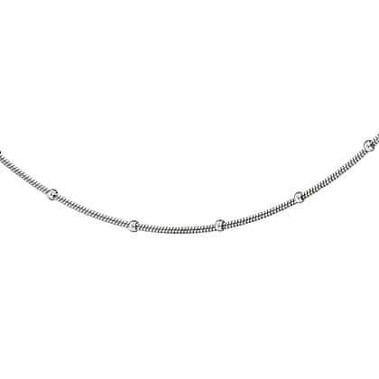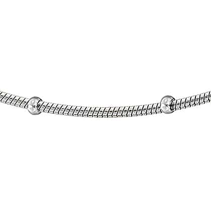 This silver chain has an awe-inspiring design which blends the snake design with the ball-station necklace. The chain has a robust build and clean silhouette that speaks of exceptional craftsmanship. It looks equally great when paired with glamorous evening wear and a daytime sundress. The 20-inch length of the chain adds to its feminine charm.