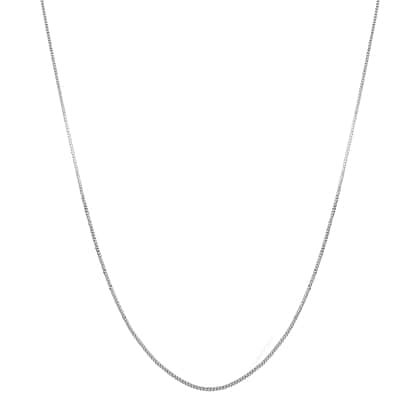 The hallmark of this curb chain fashioned from fine silver is its distinctive link design. Each link is slightly twisted and flattened to create a series of interconnected segments that lie flat when the chain is laid down. This structure enhances its durability and lends the chain a 3-dimensional look when worn on the neck. The Sterling Silver Chain has an impressive length of 20 inches.