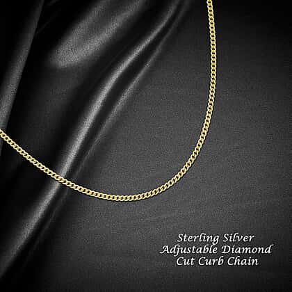 Adorn yourself with the unparalleled allure of Yellow Gold in this Sterling Sterling Silver Adjustable Diamond Cut Curb Chain. The silver chain in classic curb style draws opulence from a 1-micron Yellow Gold overlay. Sterling silver keeps it durable while the gold overlay adds strength to the timeless design.
