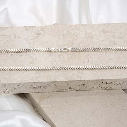This square franco chain is the epitome of sleek, sophisticated style. This luxurious chain features a unique square link design that distinguishes it from traditional chains. The sterling silver construction provides durability and a bright, glossy finish that will catch the eye and add a touch of shine to any look. The franco style of this chain makes it versatile and perfect for layering or wearing on its own, and its adjustable length allows for a custom fit.