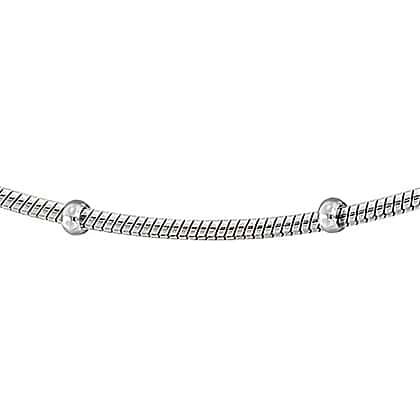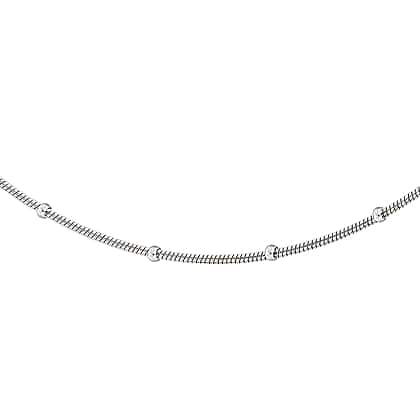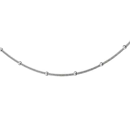 This silver chain has an awe-inspiring design which blends the snake design with the ball-station necklace. The chain has a robust build and clean silhouette speaks of exceptional craftsmanship. It looks equally great when paired with glamorous evening wear and a daytime sundress. The 22-inch length of the chain adds to its feminine charm.