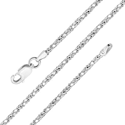 Sterling Silver Mirror Popcorn Chain (Size 20) with Lobster Clasp