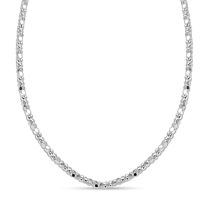 Sterling Silver Mirror Popcorn Necklace (Size 18) with Lobster Clasp