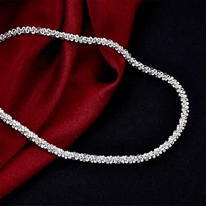 When you need to match your razor-sharp instinct at an office meet with a fine piece of jewellery, this diamond-cut silver necklace will keep up with your demanding tastes in fashion. The silver necklace is Italian-made and lends edgy modernism to your dressing style. It flatters your style with the understated elegance of silver. The 22-inch chain sits between your collarbone and the bust giving you a sharp makeover.