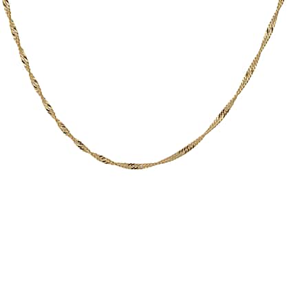 Yellow Gold Overlay Sterling Silver Adjustable Singapore Chain (Size-24) with Lobster Lock