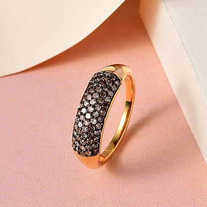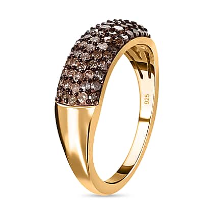Champagne Diamond Cluster Ring in 18K Vermeil Yellow Gold Plated Sterling Silver 0.50 ct