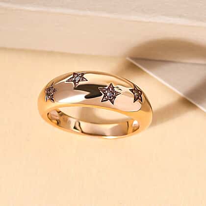 Champagne Diamond Star Dome Ring in 18K Yellow Gold Vermeil Plated Sterling Silver 0.070 Ct.