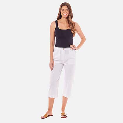 Charlotte West - Ladies Linen 3/4 Trousers with Button Fashing (Size 12) - White