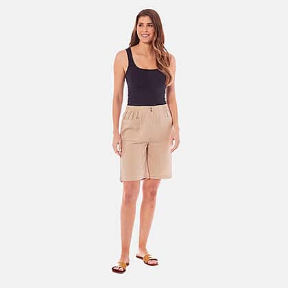 Get these ladies' linen shorts by Charlotte West for a relaxed and lightweight feel. Made with linen fabric, front button fastening and two pockets for a casual look. Pair it with a loose top for a beach-ready or holiday look.