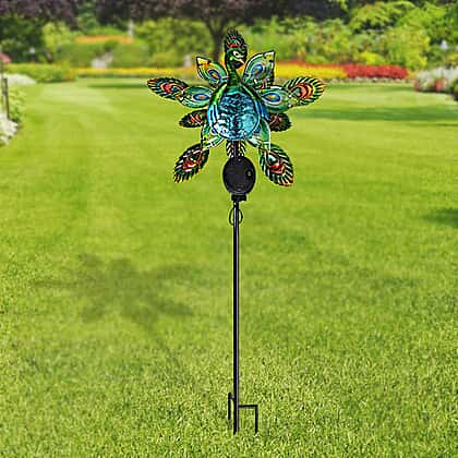 Charming Nature Theme Flamingo Hand Painted Solar Wind Spinner (Size:28x39x110 Cm) - Red