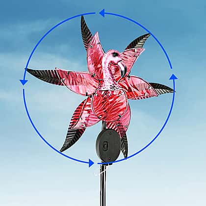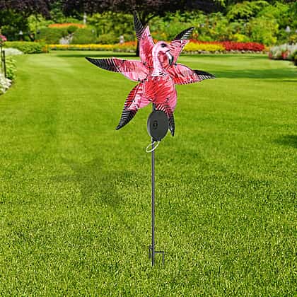 Solar Powered Nature Theme Flamingo Hand Painted Wind Spinner - Red