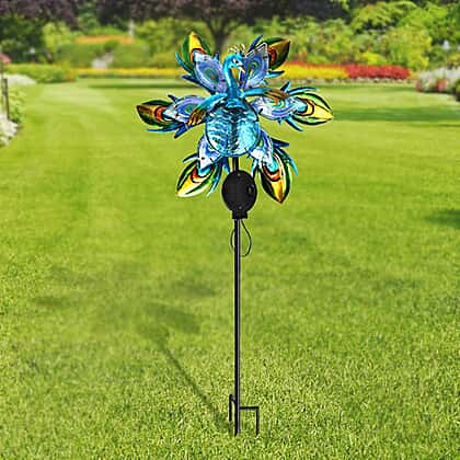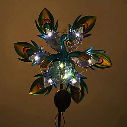 Solar Powered Nature Theme Peacock Hand Painted Wind Spinner - Blue and Multi