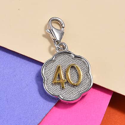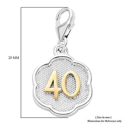 40 Birthday Anniversary Charm in Platinum and Yellow Gold Overlay Sterling Silver