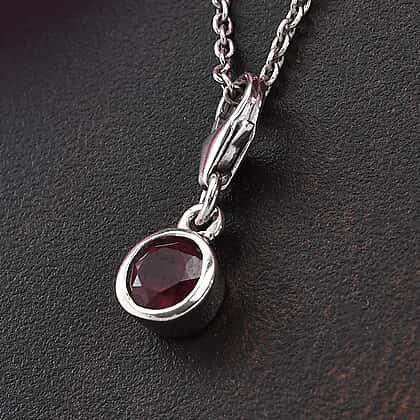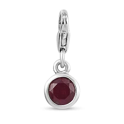 African Ruby (FF) (Rnd) Charm in Platinum Overlay Sterling Silver