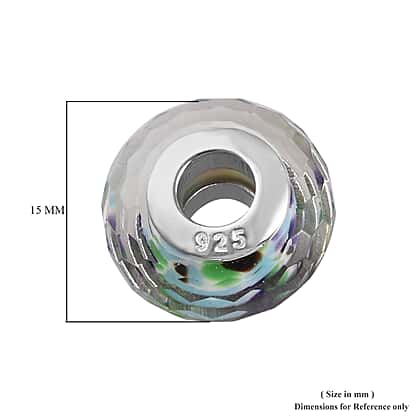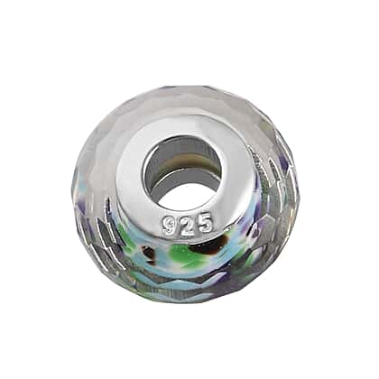 Charmes De Memoire Tropical Sea Murano Style Glass Bead Charm in Platinum Plated Sterling Silver