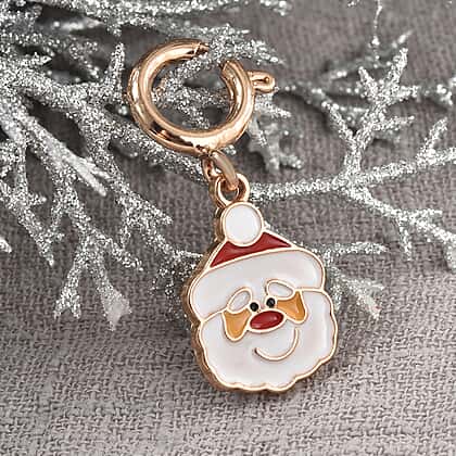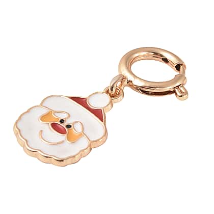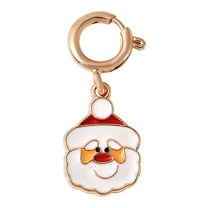 Enamelled Santa Claus Charm with Spring Ring Clasp in Gold Tone